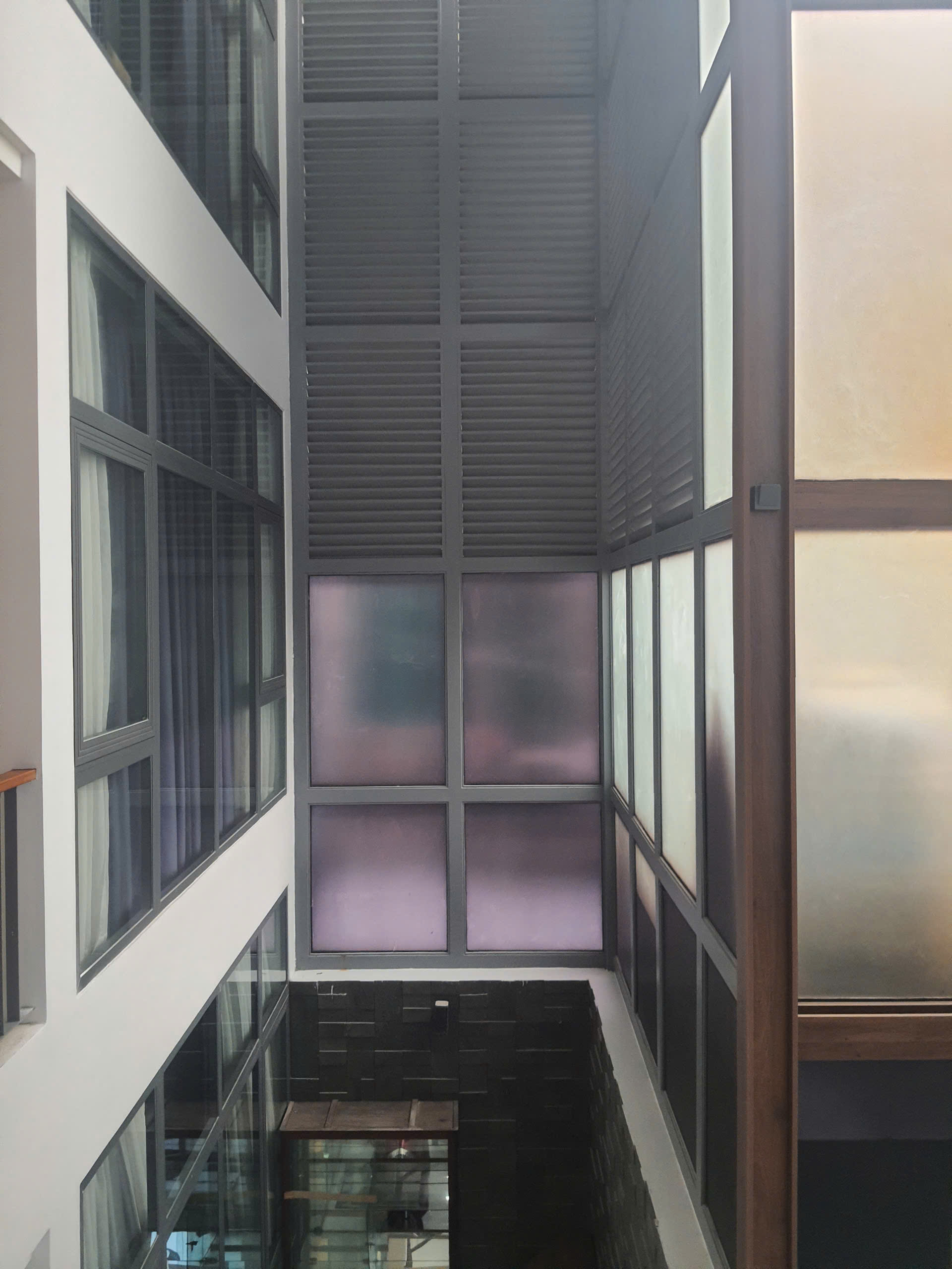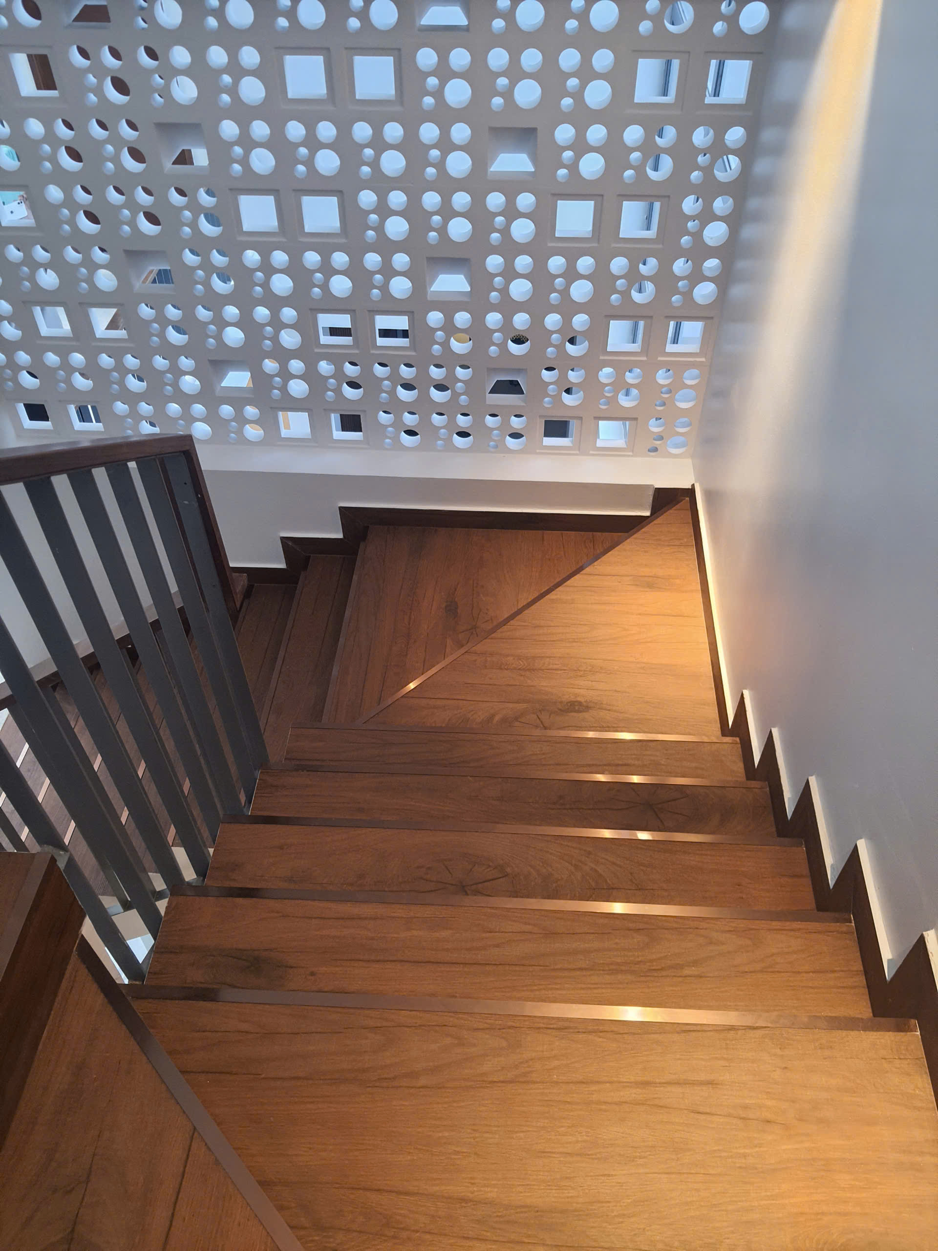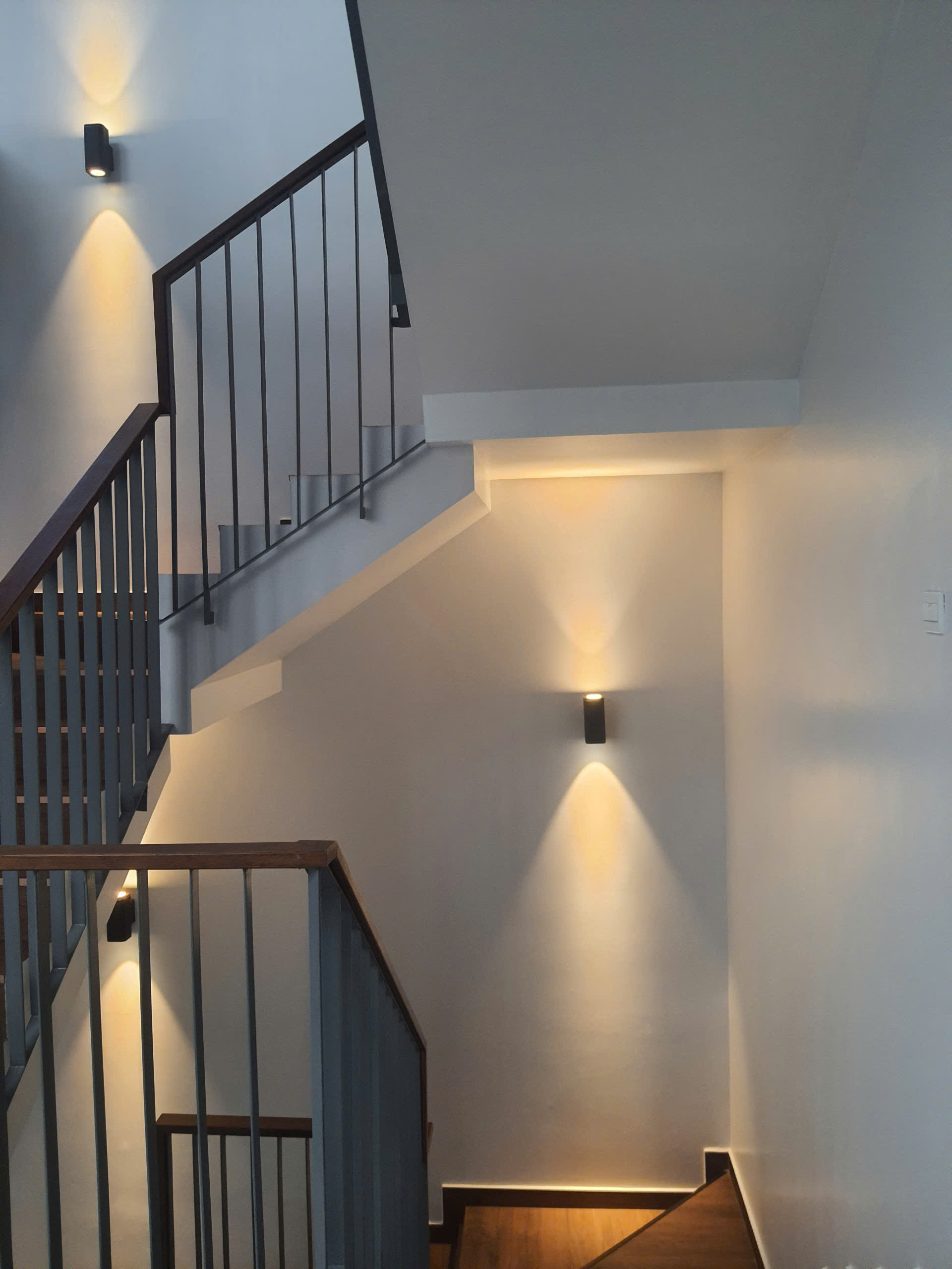 Mặt tiền sử dụng tông màu trung tính trang nhã, điểm nhấn bằng hệ ban công sắt sơn tĩnh điện và cửa kính lớn, giúp công trình luôn thông thoáng, đón gió và ánh sáng tự nhiên tối ưu. Hệ thống chiếu sáng ngoại thất được bố trí tinh tế, tạo hiệu ứng ánh sáng ấm áp về đêm, nâng tầm hình ảnh dự án và gia tăng giá trị nhận diện.